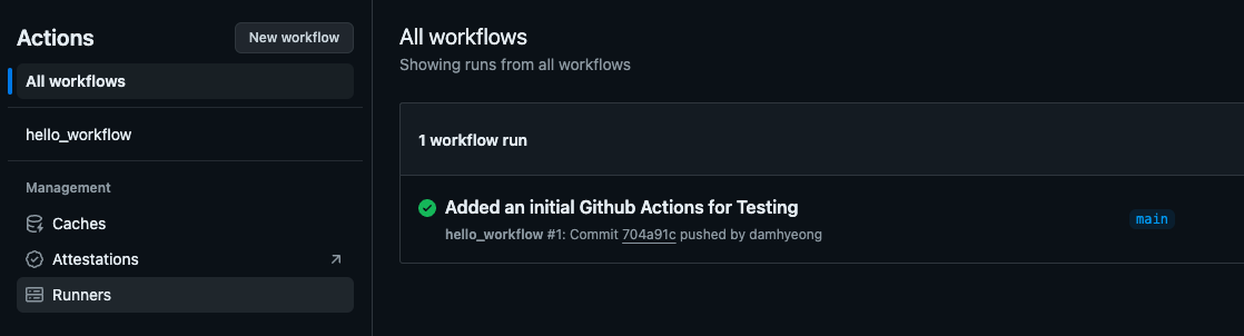 당신이 생성한 github action 은 이벤트가 실행 된 이후 즉시 시작됩니다.